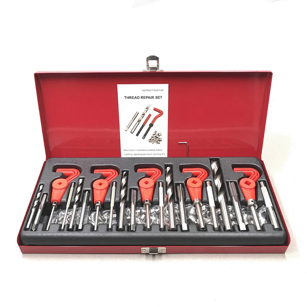 1. Kit di attrezzi per riparazione filettatura danneggiata da 131 pezzi di alta qualità per bomboniere di motori di automobili, con metallo, confezioni incluse dimensioni comuni. Ideale per riparare fili danneggiati, adatto per motori e altre applicazioni automobilistiche.