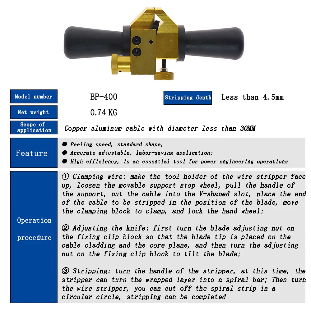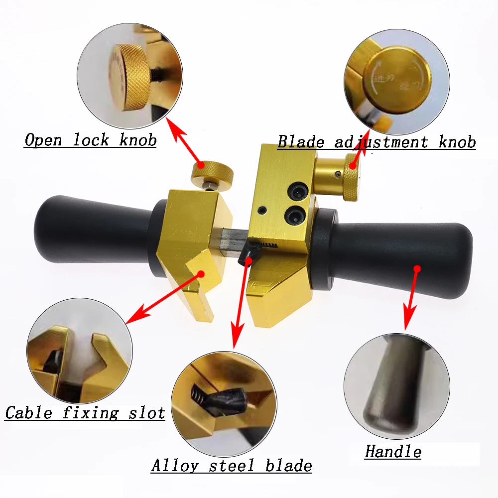 (2) Regolare il coltello: prima gira il dado di regolazione della lama sul blocco clip di fissaggio, quindi la punta della lama è posizionata sul rivestimento del cavo e dell’aereo centrale, e poi trasformare il dado di regolazione sul blocco clip di fissaggio per inclinare la lama;