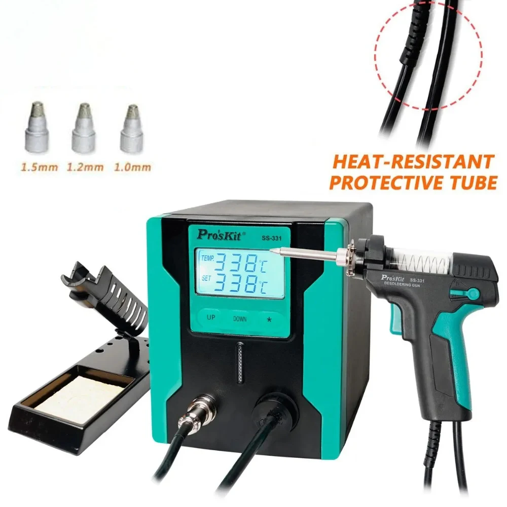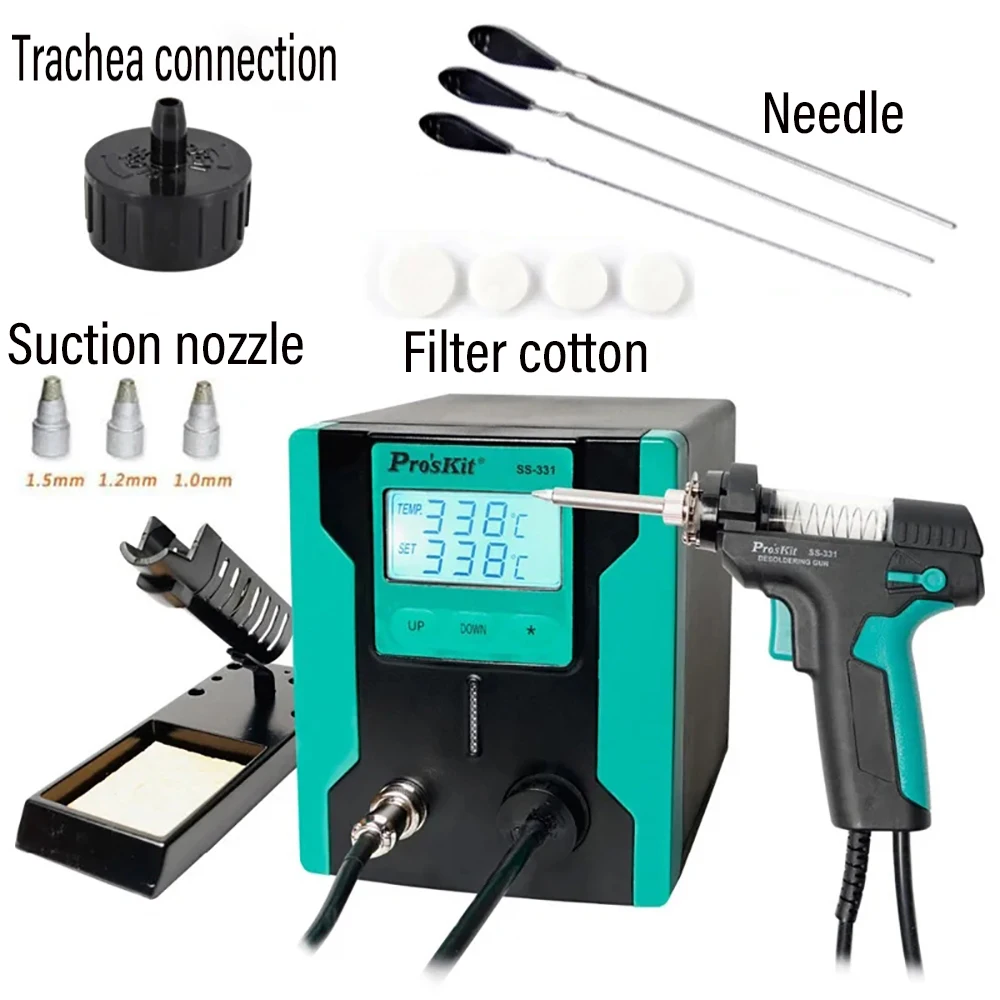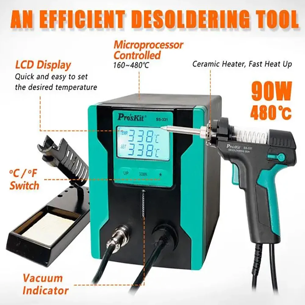 La stazione dissaldante LCD SS-331 è efficiente strumento dissaldante con un vuoto integrato per schede e componenti a foro passante.È una stazione dissaldante termostaticamente controllata che fornisce basso costo e alte prestazioni.La struttura ergonomica consente un funzionamento manuale, solo prende alcuni secondi al perno, più sicura, efficiente e confortevole.