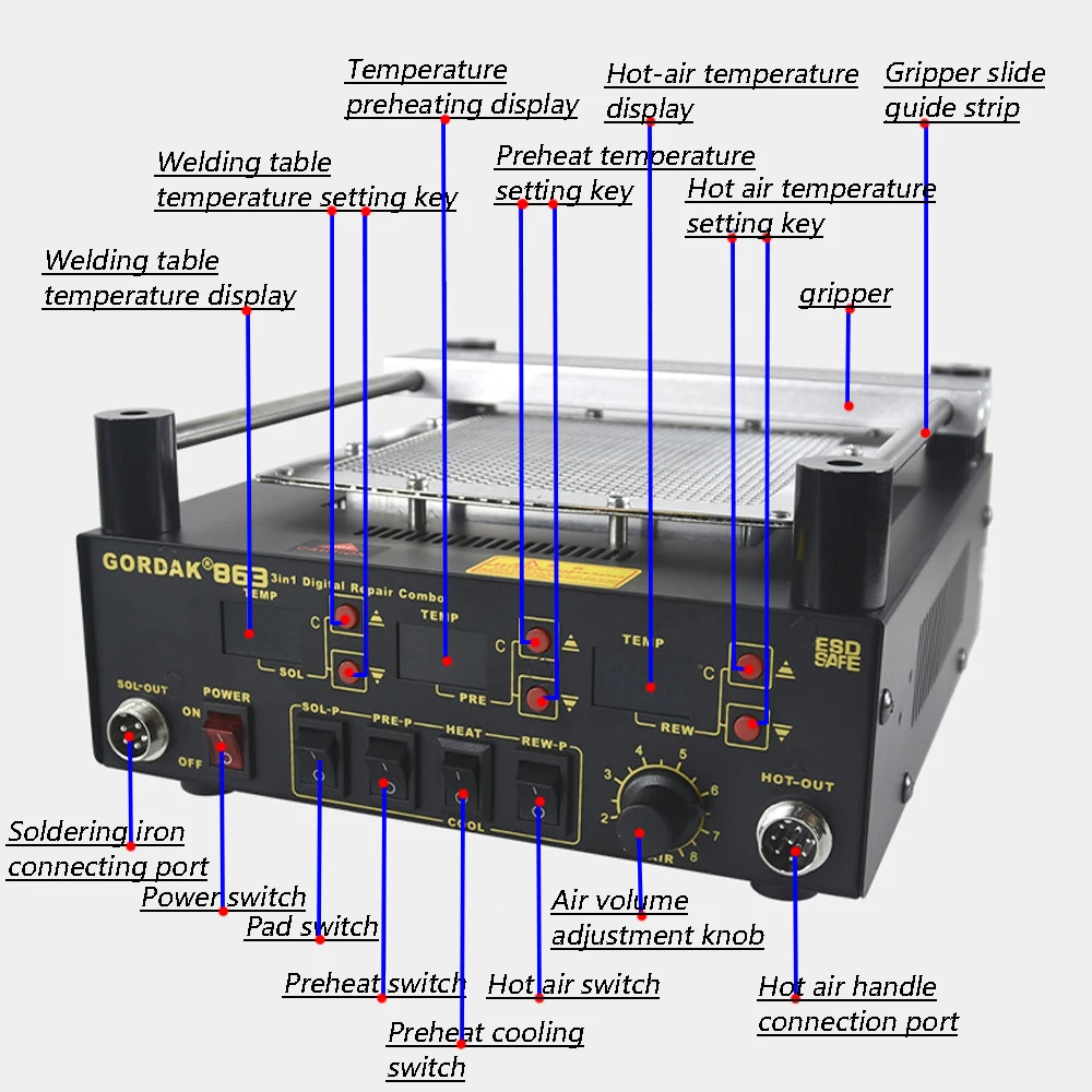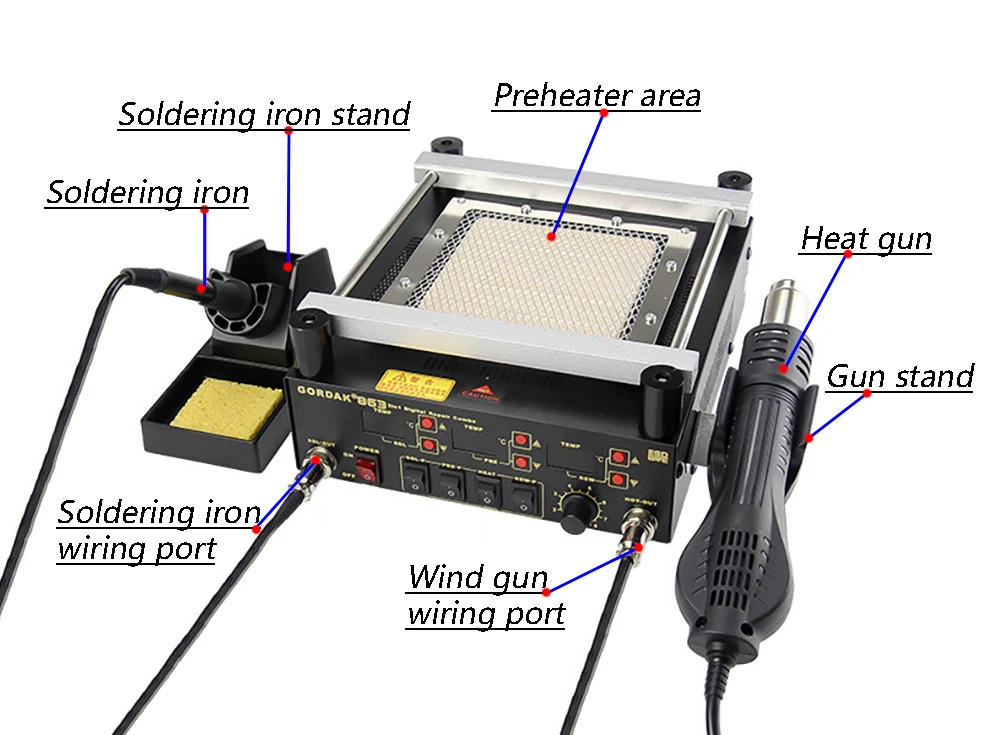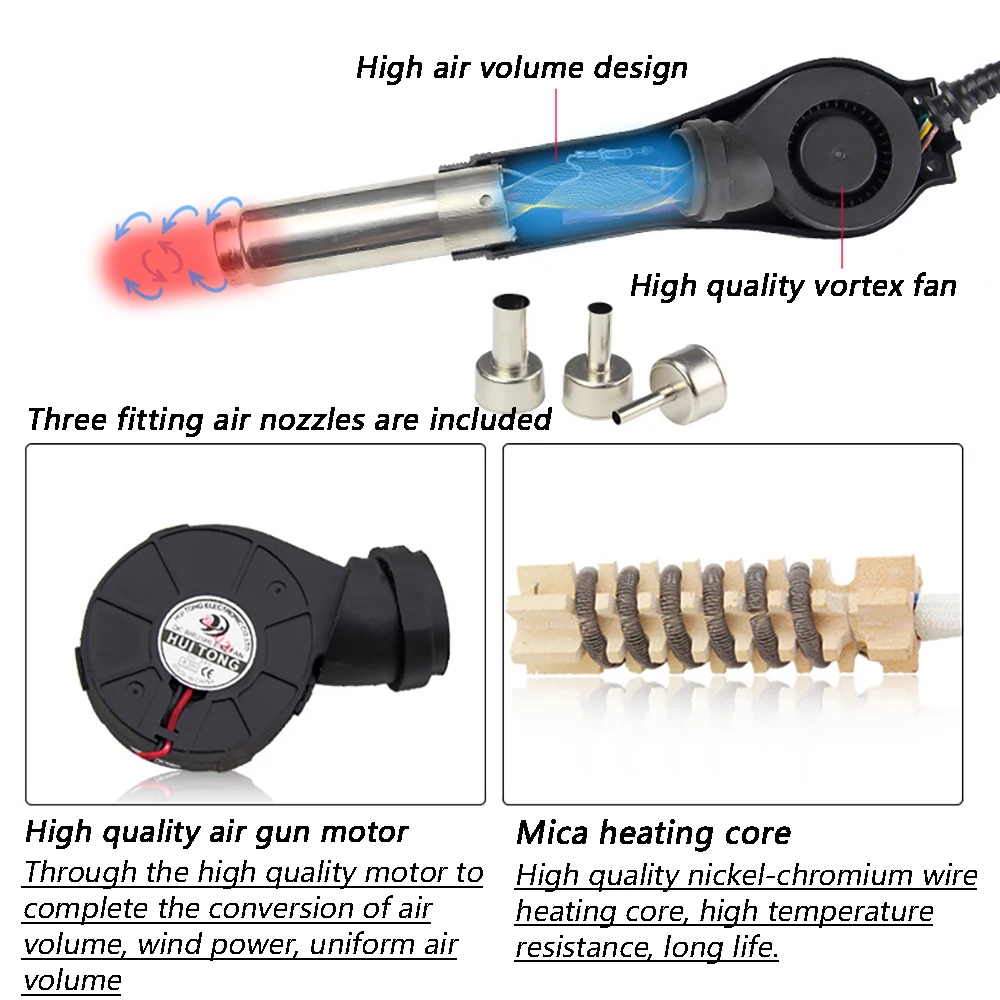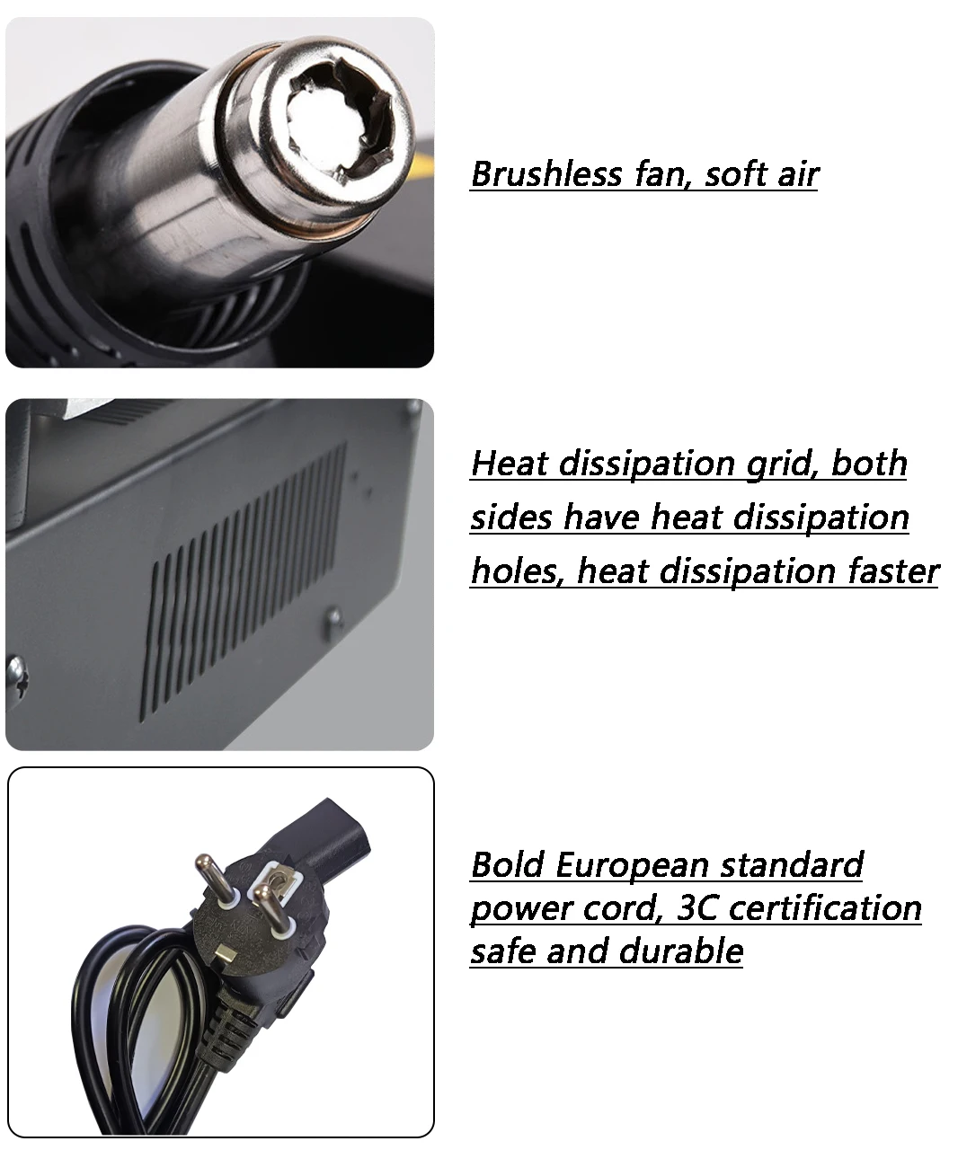 Pistola termica e saldatore elettrico la temperatura può essere regolata separatamente, display digitale della temperatura, più intuitivo, preciso, migliora l’efficienza.