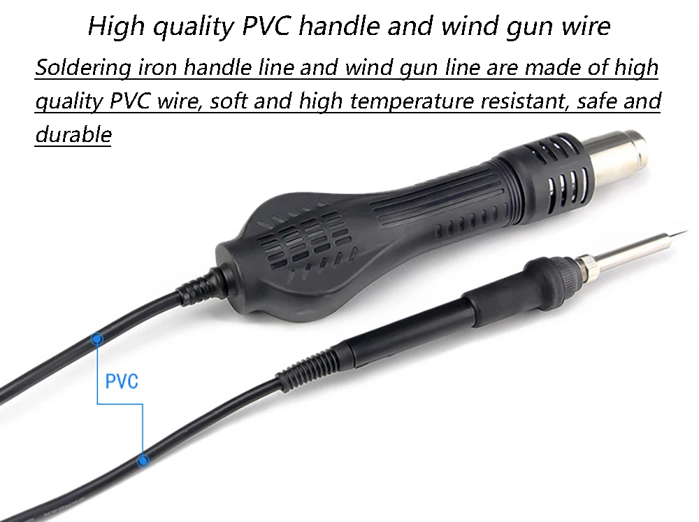 La linea di maniglie per saldatore e la linea di pistole a vento sono realizzate con filo in PVC di alta qualità, resistente alle alte temperature, sicuro e durevole