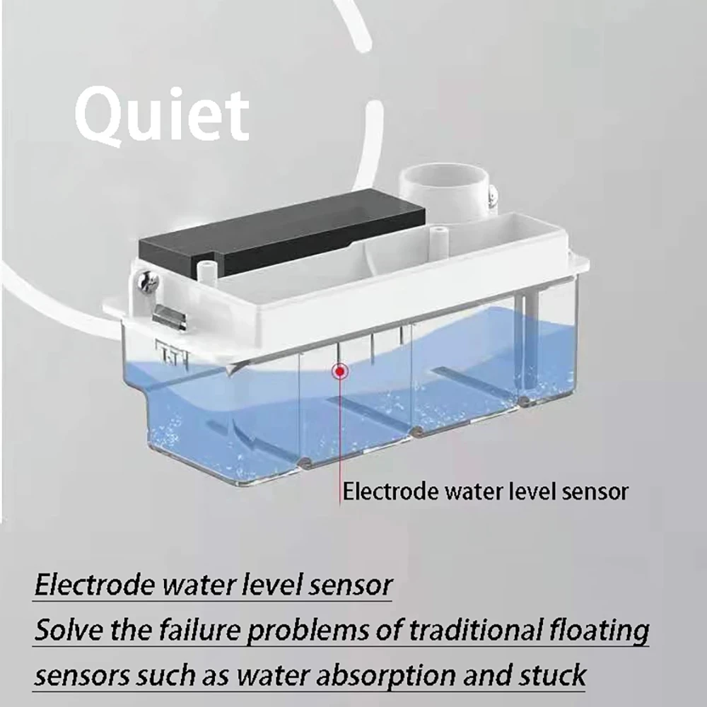 Quando il livello del liquido nel serbatoio dell’acqua contatta l’elettrodo, la pompa dell’acqua inizia a lavorare e il condensato è rimosso.Quando il livello del liquido è troppo basso, la potenza è tagliata automaticamente e la pompa dell’acqua si ferma funzionante.