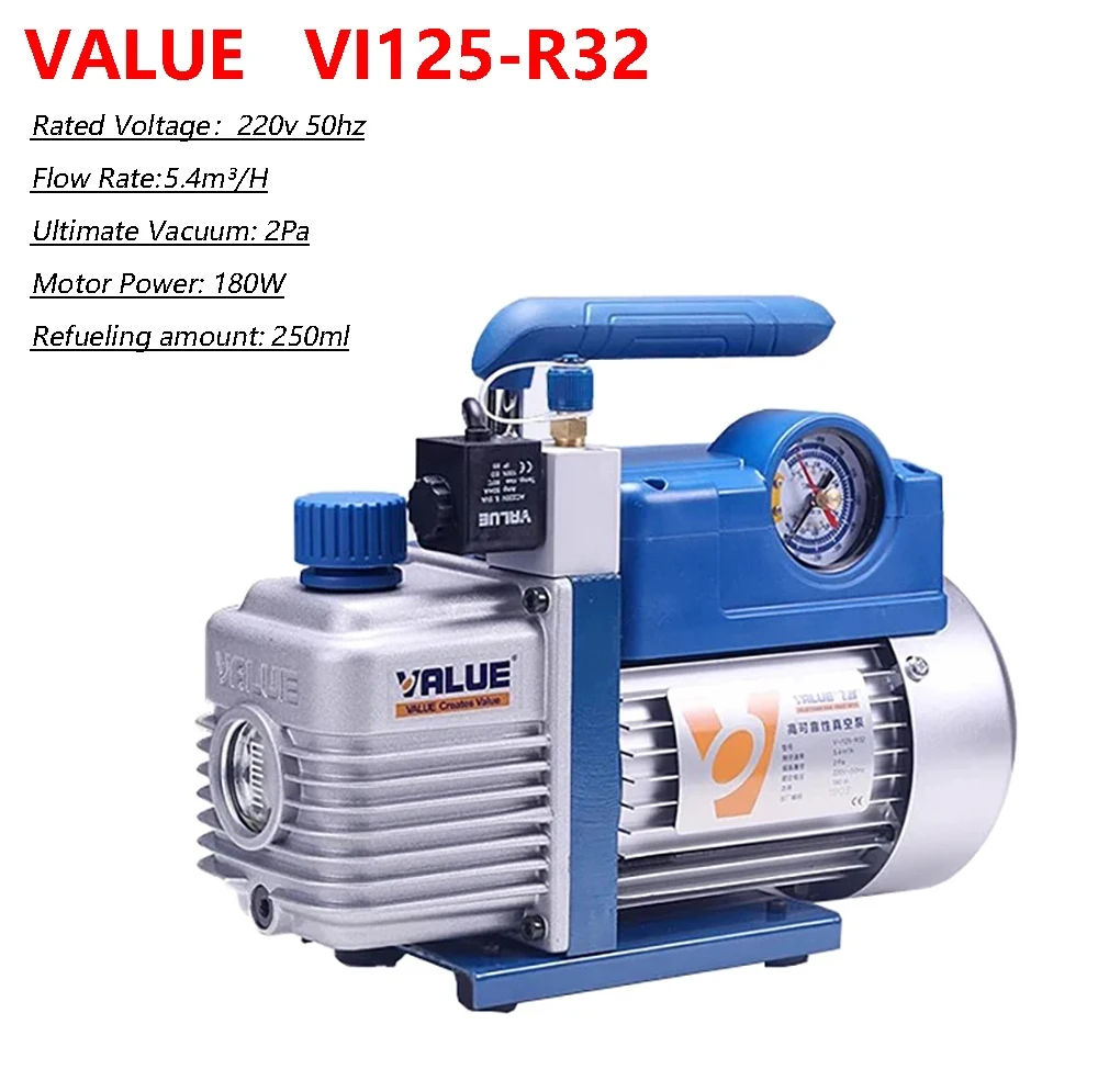 2. Le pompe serie R32 utilizzano un design antiscintilla, adatto per refrigerante R32,1234yfl, utilizzando la tecnologia del motore di efficienza originale, negli stessi requisiti di velocità di ventilazione sotto il peso molto ridotto, rispetto ad altri prodotti con la riduzione del peso di sameweight 10KG, più comodo da trasportare.